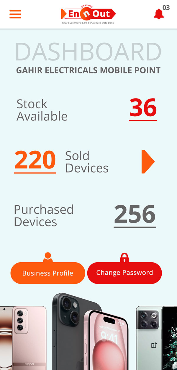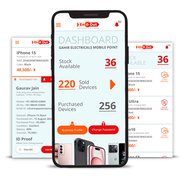 En-n-Out a sale & purchase data store mobile app simplifies transaction tracking for businesses, providing a quick and efficient way to record sales and purchases on the go. It allows dealers to log items, prices, quantities, dates, and transaction details, with valid photo id like adhaar card and DL etc and the good part is that Pruchase & sale agreement auto generated by this app.